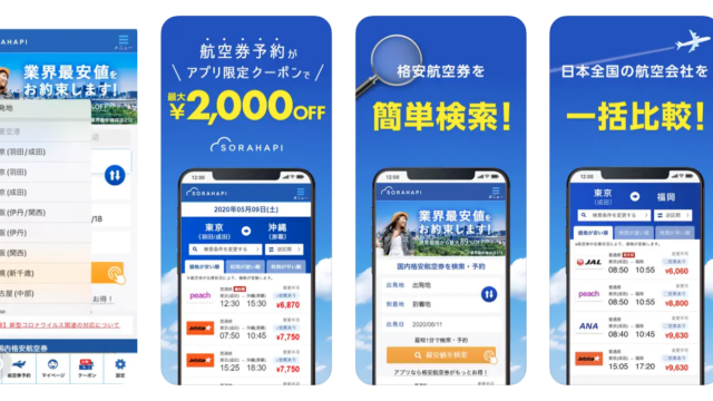 7. 飛行機で参戦する→最安値で航空券を購入できるソラハピアプリが超お得