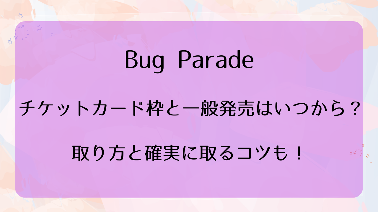 今回はBug Paradeチケットのカード枠と一般発売はいつからで取り方や確実に取るコツや倍率に日程と会場の情報についてお伝えしました。