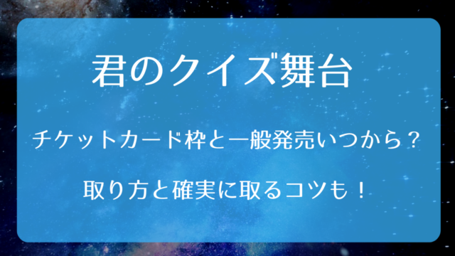 舞台 君のクイズ舞台チケットカード枠と一般発売いつから?取り方と確実に取るコツも! 2025年10月24日 haru https://www.marketplace.co.jp/ticket/wp-content/uploads/2025/11/logo.png チケット情報局by株式会社マーケットプレイス