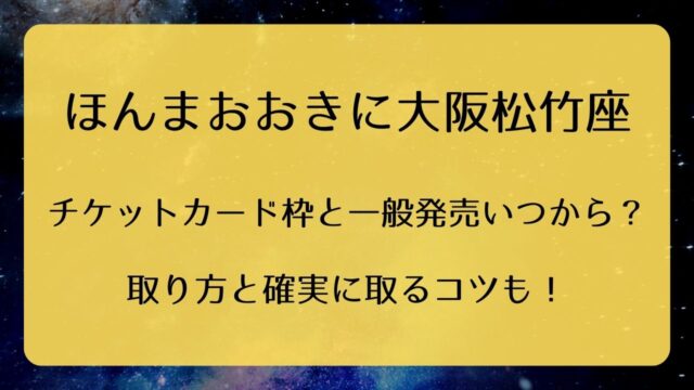 舞台 ほんまおおきに大阪松竹座チケットカード枠と一般発売いつから?取り方と確実に取るコツも! 2026年1月16日 haru https://www.marketplace.co.jp/ticket/wp-content/uploads/2025/11/logo.png チケット情報局by株式会社マーケットプレイス