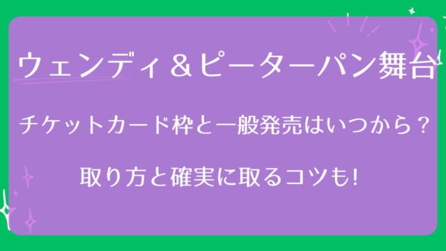 舞台 ウェンディ&ピーターパン舞台チケットカード枠と一般発売いつから?取り方と確実に取るコツも! 2026年3月6日 haru https://www.marketplace.co.jp/ticket/wp-content/uploads/2025/11/logo.png チケット情報局by株式会社マーケットプレイス