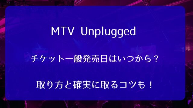 ライブ MTV Unpluggedチケット一般発売いつから?取り方と確実に取るコツも! 2026年1月14日 haru https://www.marketplace.co.jp/ticket/wp-content/uploads/2025/11/logo.png チケット情報局by株式会社マーケットプレイス