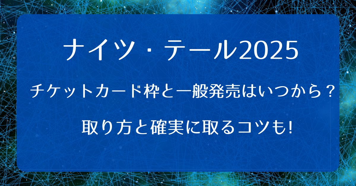 今回はナイツ・テイル2025チケットのカード枠と一般発売はいつからで取り方や確実に取るコツや倍率に日程と会場の情報についてお伝えしました。