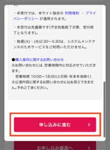 ②注意事項の下の「申し込みに進む」をタップ。
