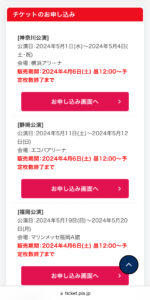 チケットぴあ」と表示され下にURLがあれば一般発売が行われるということですので、タップして発売日を確認しましょう。