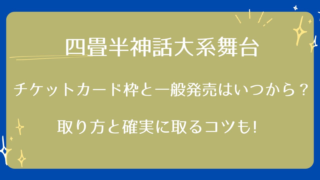 今回は四畳半神話大系舞台チケットのカード枠と一般発売はいつからで取り方や確実に取るコツや倍率に日程と会場の情報についてお伝えしました。